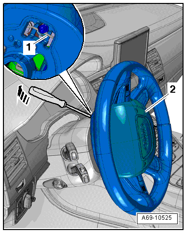 - Remove the driver side airbag. Refer to → Chapter "Airbag Unit with Igniter, Removing and Installing".
