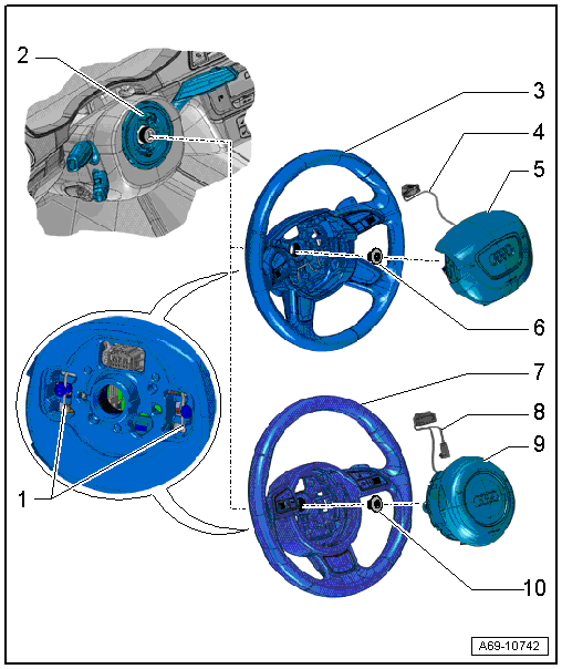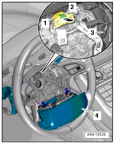 - Remove the driver airbag -4- from the steering wheel slightly.