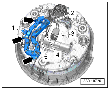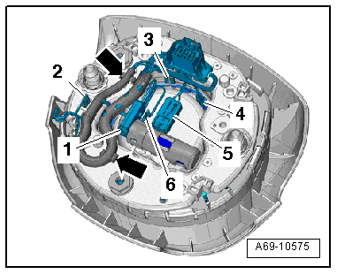 - Disconnect and remove the connectors -3 and 5- for the Driver Airbag Igniter -N95-/Driver Airbag Release Valve Igniter -N490-.