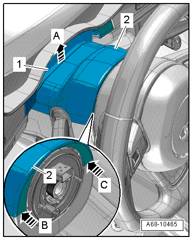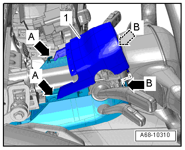 - Engage the upper trim panel -1- in the lower trim panel -A arrows-.