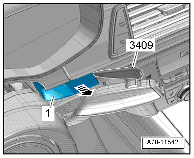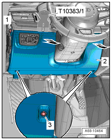 - Remove the driver side instrument panel side cover. Refer to → Chapter "Instrument Panel Side Cover, Removing and Installing".
