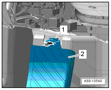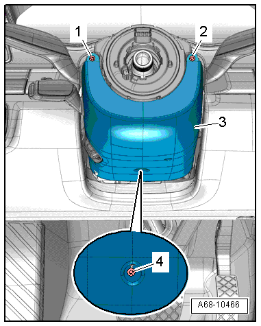 When the bolts -1 and 2- are not accessible, the steering wheel must be removed for further work. Refer to → Suspension, Wheels, Steering; Rep. Gr.48; Steering Wheel; Steering Wheel, Removing and Installing.