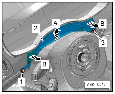 - Unclip the driver side instrument panel cover -2- from the instrument panel starting from the upper edge using the Wedge Set -T10383/1--arrows-.