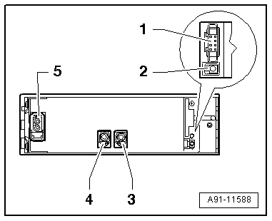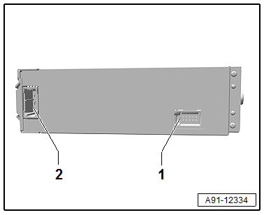 - Insert the Fiber-Optic Repair Set - Connector Protective Caps -VAS6223/9--1- onto the MOST Bus connector -2-.