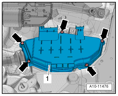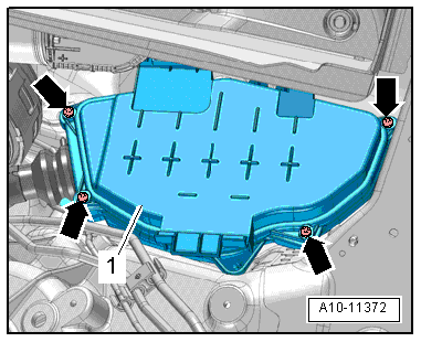 - Remove the bolts -arrows- and remove the cover -1- for the plenum chamber E-box.