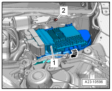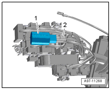 - Open the clip -2- and remove the connector -1-.
