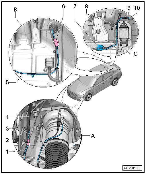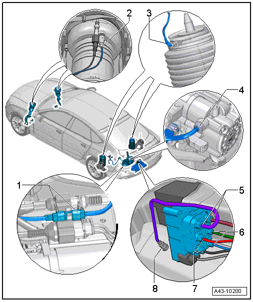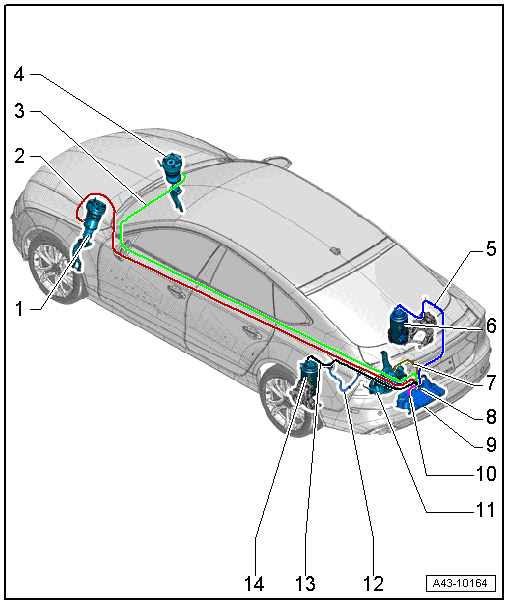→ Fig. "Routing: Air Line to the Front Air Spring Damper"