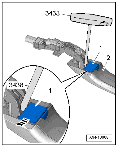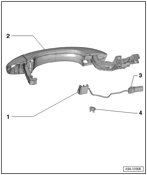 - Remove the exterior door handle. Refer to → Body Exterior; Rep. Gr.58; Door Components; Door Handle, Removing and Installing.