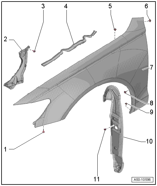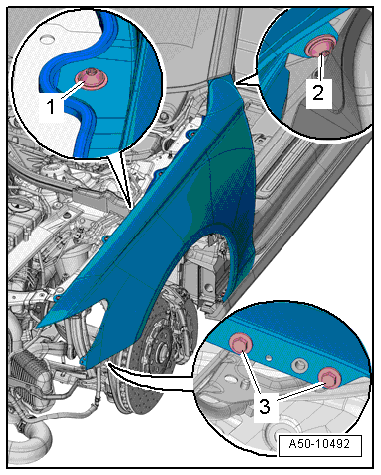 - Remove the fender. Refer to → Chapter "Fender, Removing and Installing".