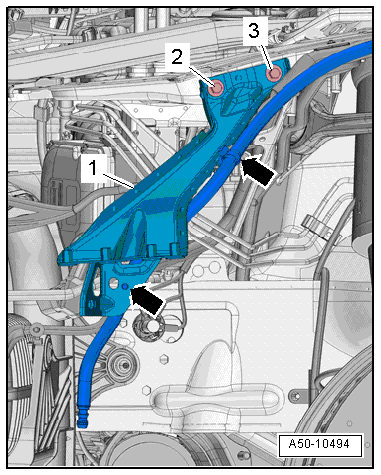 - Remove the front wheel housing liner. Refer to → Chapter "Front Wheel Housing Liner, Removing and Installing".