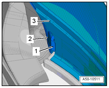 - Install the seal -2- between the fender flange and the fender -1- as illustrated.