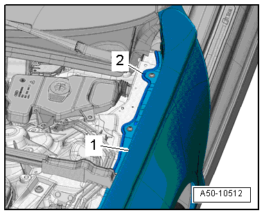 - Remove the front bumper cover. Refer to → Chapter "Bumper Cover, Removing and Installing".