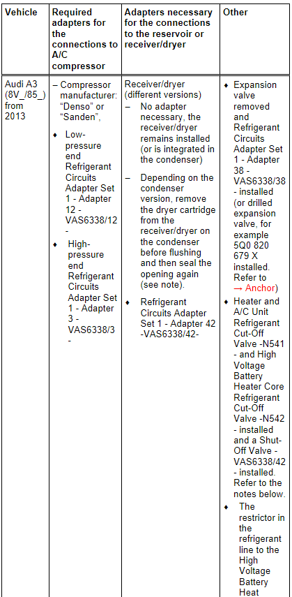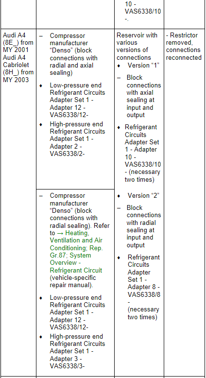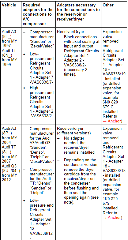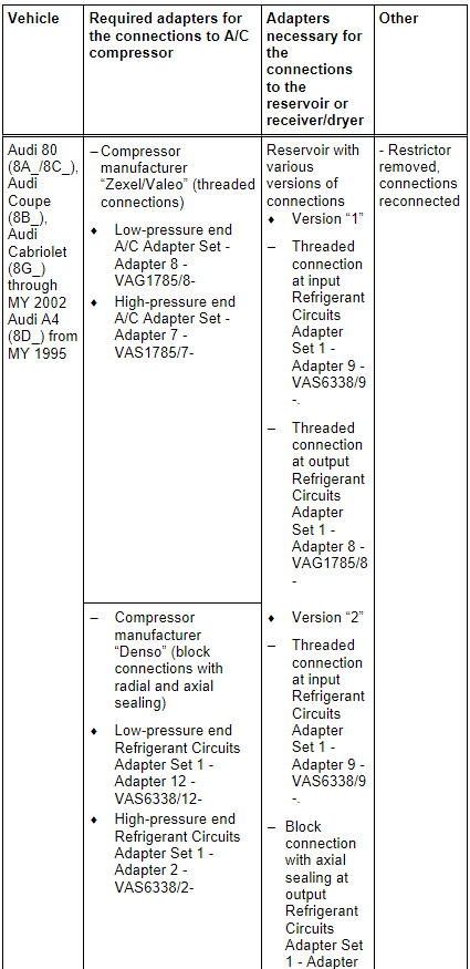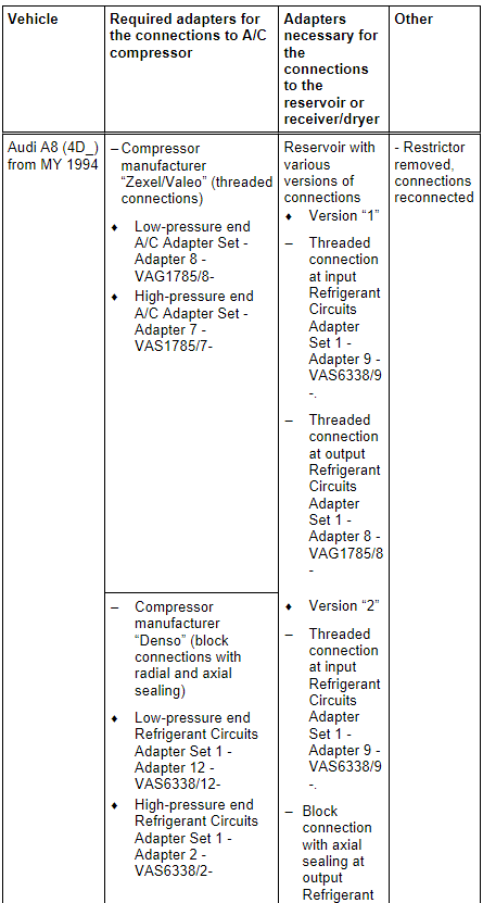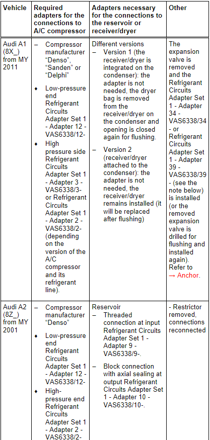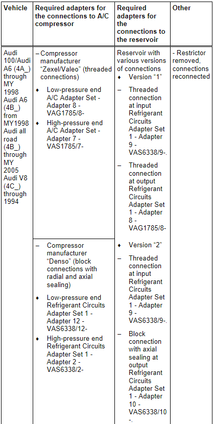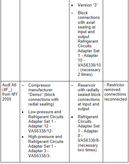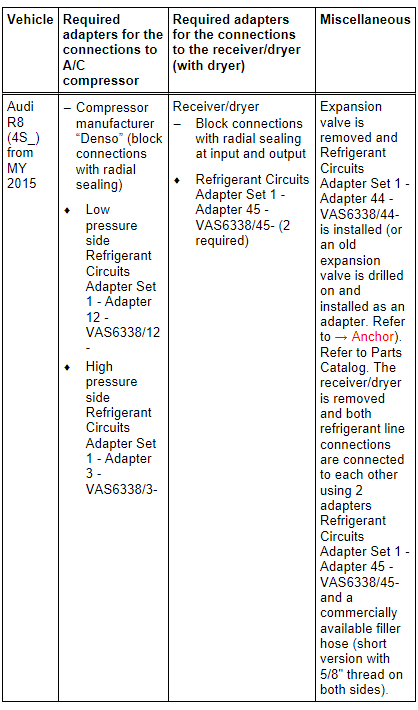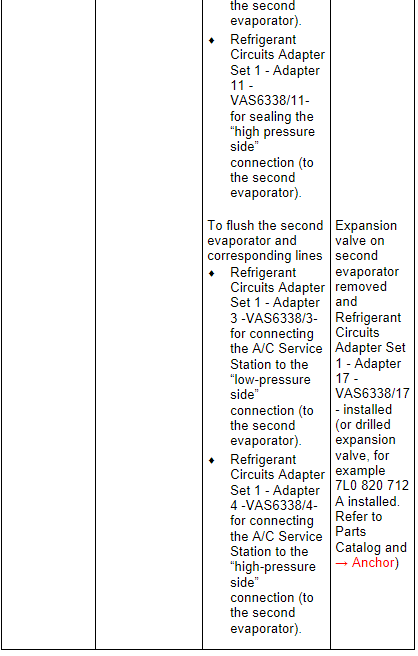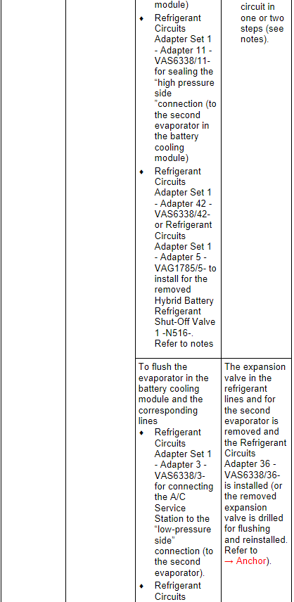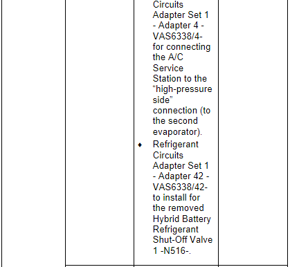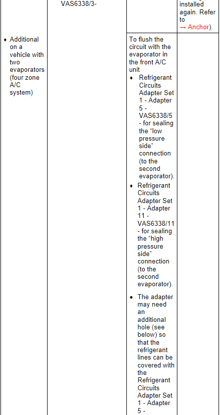- From the Refrigerant Circuits Adapter Set 1 -VAS6338/1-