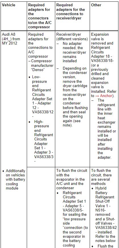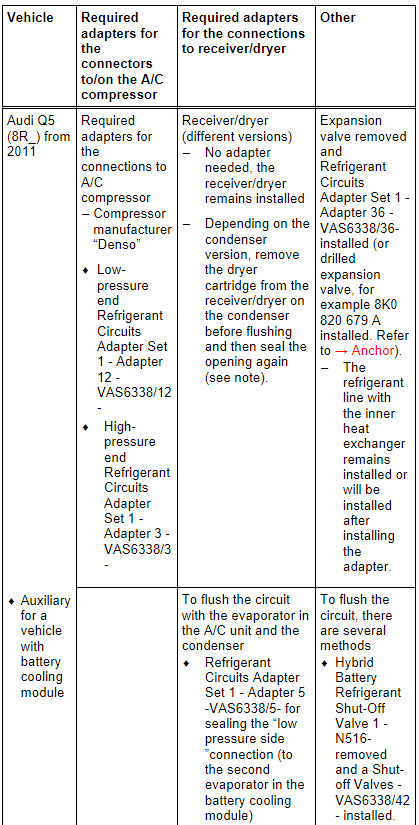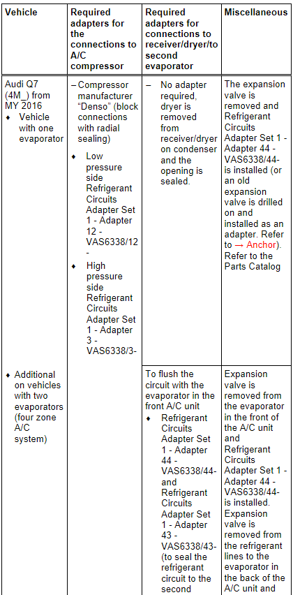 - To flush on the Audi Q7 e-tron the refrigerant circuit is