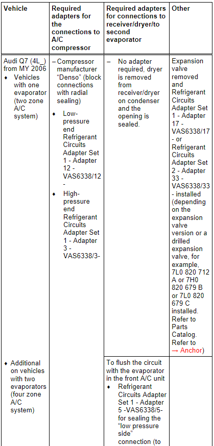 - On the Audi Q7 e-tron the refrigerant circuit is flushed in