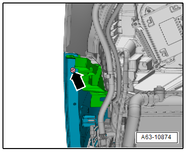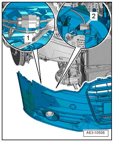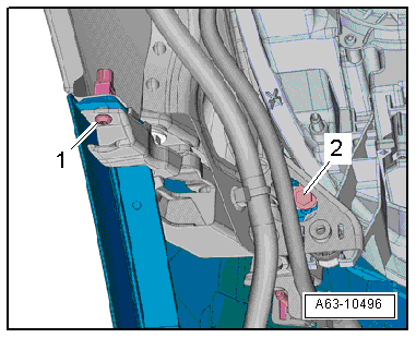 - Only loosen the front wheel housing liner in the area on the bumper (do not remove). Refer to → Chapter "Front Wheel Housing Liner, Removing and Installing".