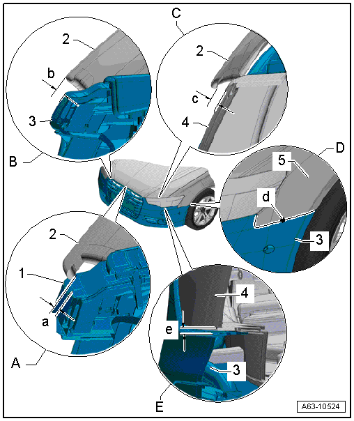 - Check the gap dimensions. Refer to → Chapter "Front Bumper Cover Gap Dimensions".