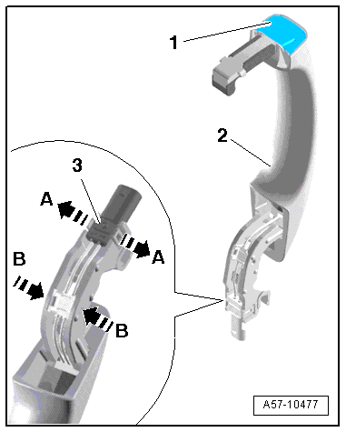 - Remove the exterior door handle. Refer to → Body Exterior; Rep. Gr.57; Door Components; Door Handle, Removing and Installing.