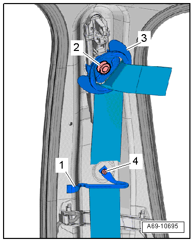 - Remove bolt -2- for the seat belt pulley -3-.