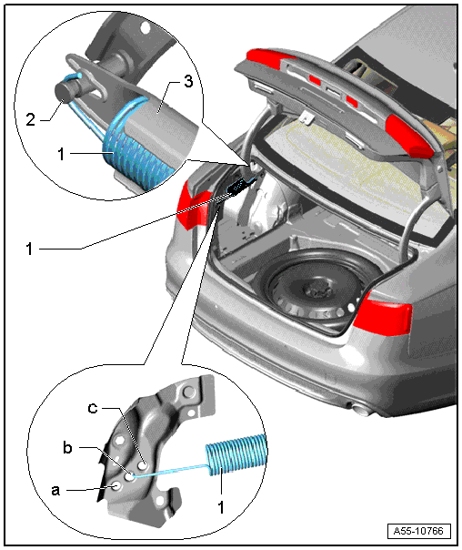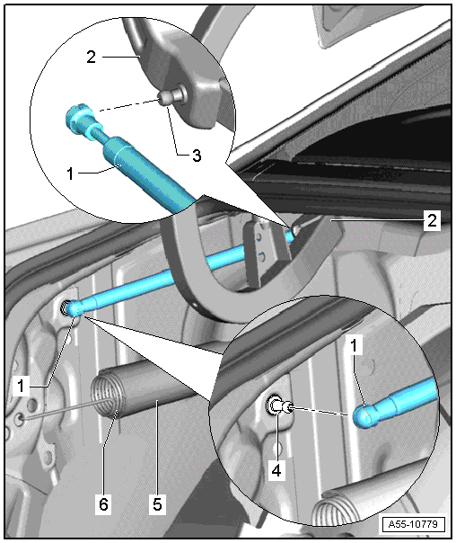 - Using a small screwdriver, lift the securing spring -1- slightly and remove the gas-filled strut -2- from the ball stud.