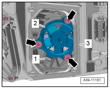 Left/Right Headlamp Fan 2 -V463-/-V464-, Removing and Installing
