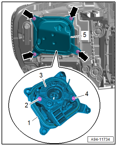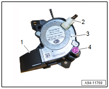 - Remove the screw -4- and then remove the fan -3- from the mount -1-.