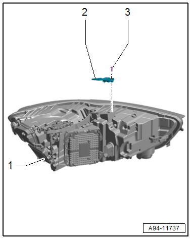 - Remove the headlamp with the broken tabs. Refer to → Chapter "Headlamp Housing, Removing and Installing, HID Headlamp and LED Headlamp from MY 2015".