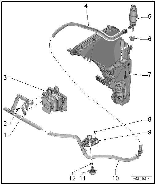 - Washer fluid reservoir, removing and installing. Refer to → Chapter "Windshield Washer Fluid Reservoir, Removing and Installing".