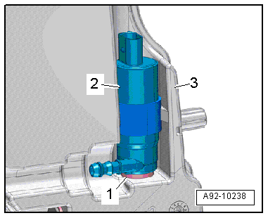 - Remove the washer fluid reservoir. Refer to → Chapter "Windshield Washer Fluid Reservoir, Removing and Installing".