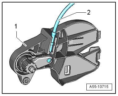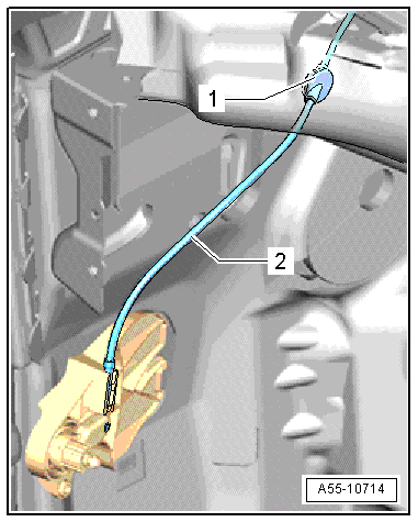 - Move the release cable -2- upward as illustrated and clip it into the bracket -1-.