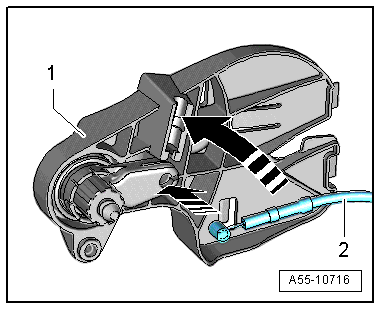 - Install the housing cover -7- so that the arrow points toward the release cable inside the passenger compartment.