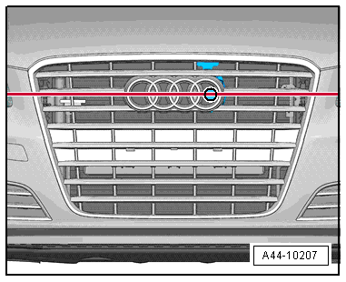 - Turn the Calibration Tool - Linear Laser -VAS6350/3- back on and check the specified height and correct if necessary. A laser beam is beamed on the vehicle.