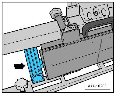 - Install and secure the Calibration Tool - Linear Laser -VAS6350/3--arrow- into the guide in the Night Vision Calibration Tool.
