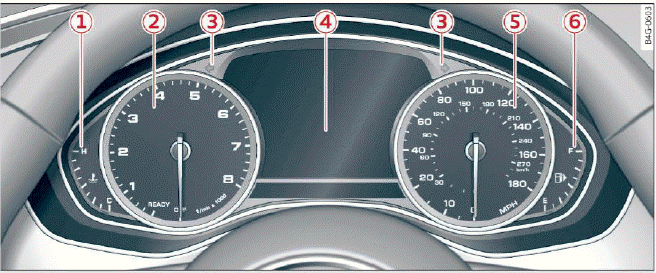 The instrument illumination for the needles and dials turns on when the ignition is turned on and the lights are turned off. The illumination for the gauges reduces automatically and eventually turns off as brightness outside increases.