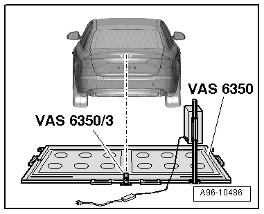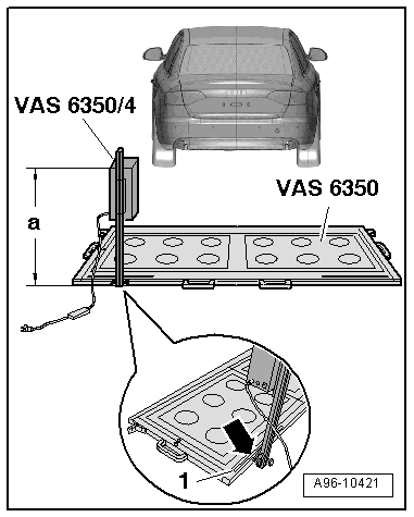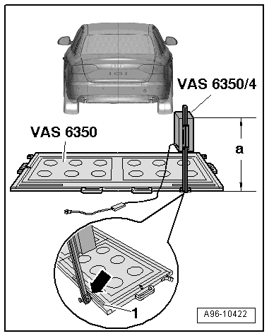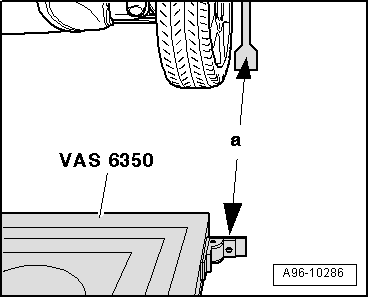 - Position the Calibration Tool -VAS6350- at distance -a- to the rear wheels.
