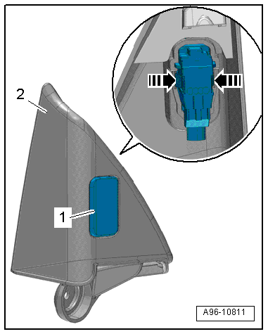 - Release the tabs in direction of -arrows- and remove the lane change assistance button -1- from the cover -2-.