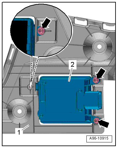 - Remove the lane change assistance control module -2- from the mount -1-.