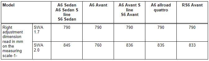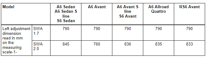 If this is not the case, measure paddle height must be corrected using locking nuts on Calibration Tool - Wheel Center Mounting -VAS6350/1-.