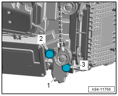 - Remove the front wheel housing liner. Refer to → Body Exterior; Rep. Gr.66; Wheel Housing Liner; Front Wheel Housing Liner, Removing and Installing.