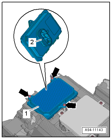 If the left HID headlamp control module cannot be removed as described, then the left charge air cooling circuit cooler must be removed. Remove the left radiator for the charge air cooling circuit. Refer to → Rep. Gr.19; Radiator/Coolant Fan; Overview - Auxiliary Cooler.