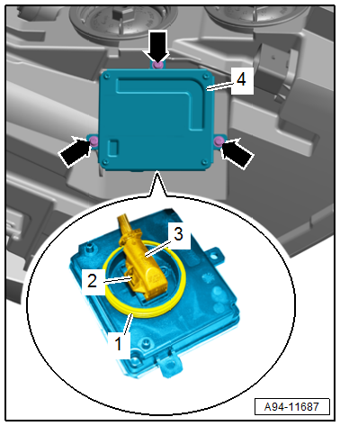 - Make sure the seal -4- between the control module and the headlamp housing is not damaged.
