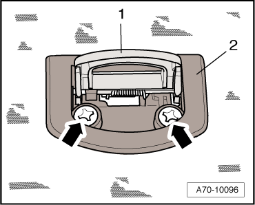 - Remove screws -arrows-, remove retaining hooks -1-.