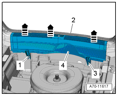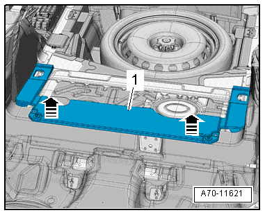 - Release the mounting bracket -1- from the underside of the luggage compartment floor.