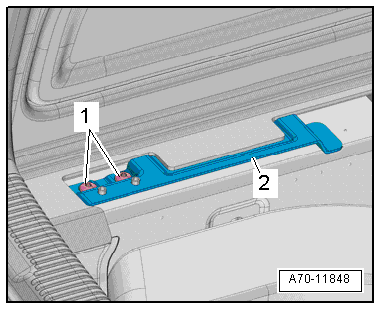- Release the mounting bracket, and remove the luggage compartment floor panel handle -2-.