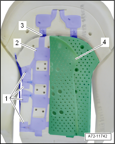 - Remove the backrest cover with the backrest cushion. Refer to → Chapter "Backrest Cover and Cushion, Removing and Installing, Multi-contour Seat through 08/2012".