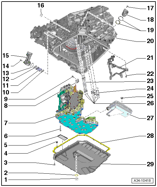 → S tronic Transmission Internal Components; Rep. Gr.34; Mechatronic.