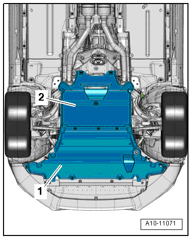 - Remove the noise insulations -1 and 2-. Refer to → Body Exterior; Rep. Gr.66; Noise Insulation; Noise Insulation, Removing and Installing.