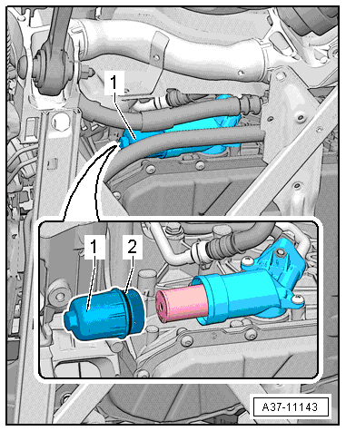 - Secure the anti-twist mechanism -1- on the ATF-filter cover -2- with the securing strap -3-.