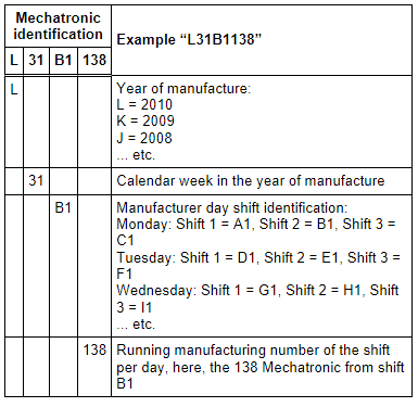 The date of manufacture is located only on the Mechatronic identification -arrow-.