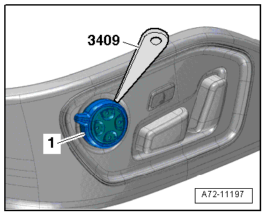 - Remove the trim on the sill side. Refer to → Chapter "Seat Side Trim on Sill Panel Side/Front Seat Trim, Removing and Installing, Multi-contour Seat".